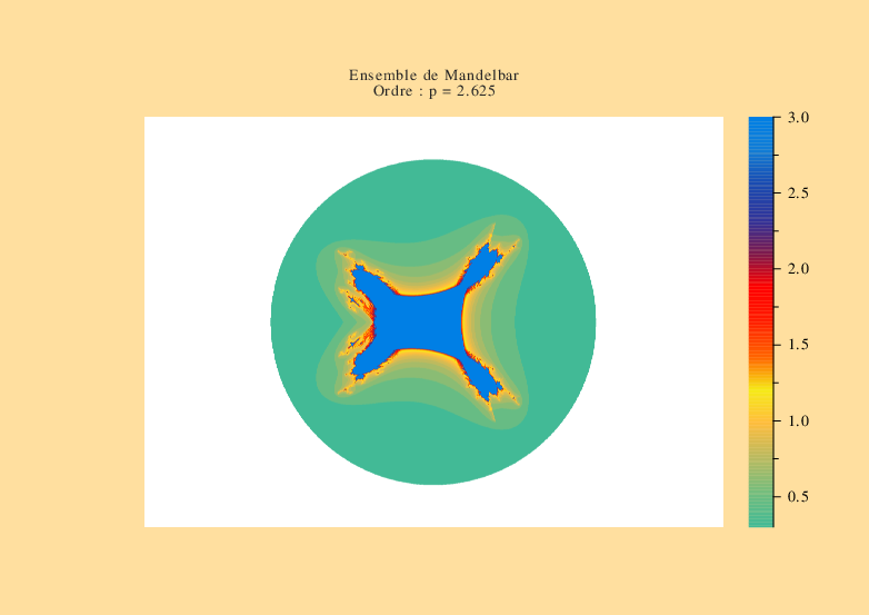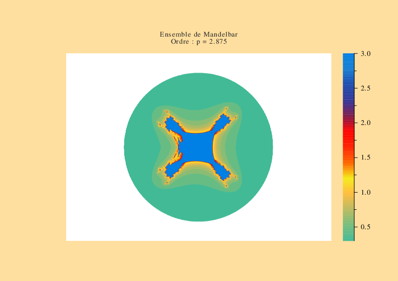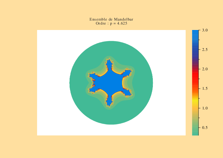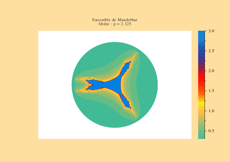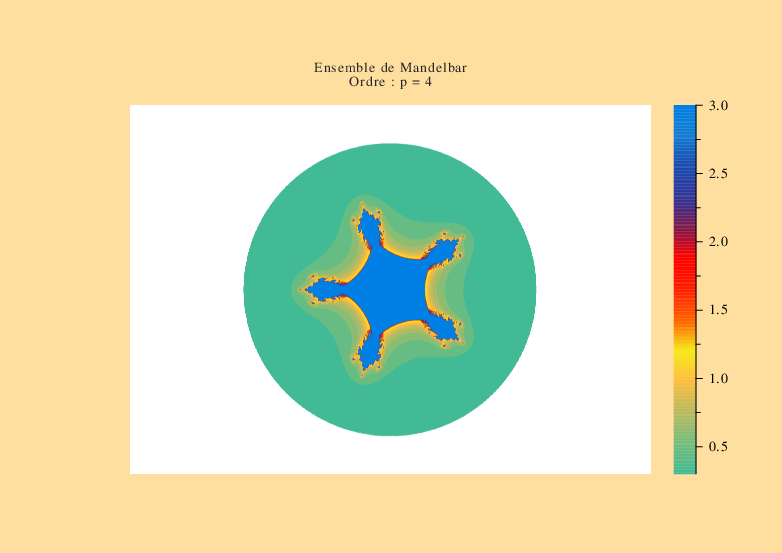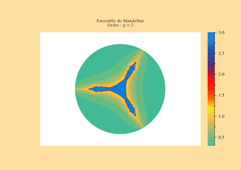 L'ensemble de Mandelbar est l'ensemble des points c du plan complexe associés à la récursion qui suit :