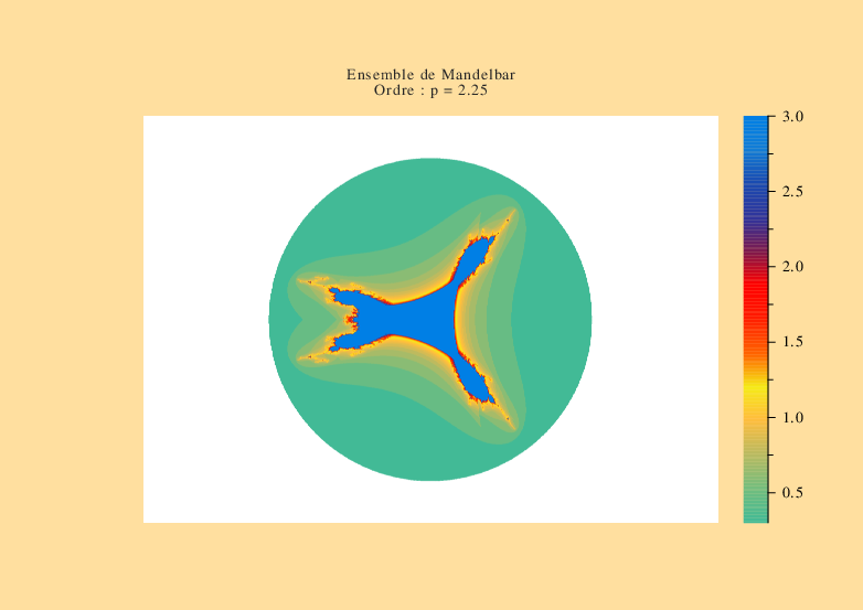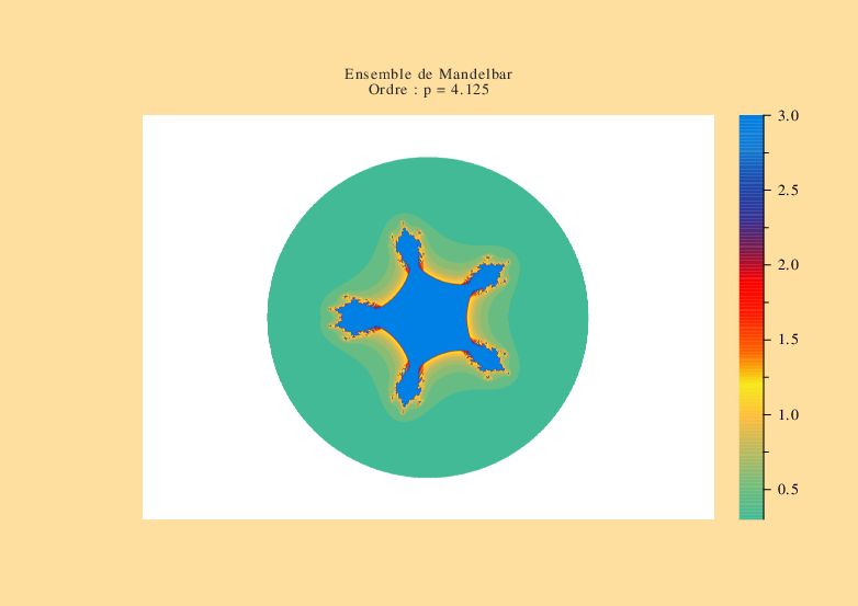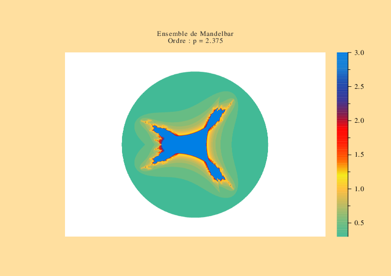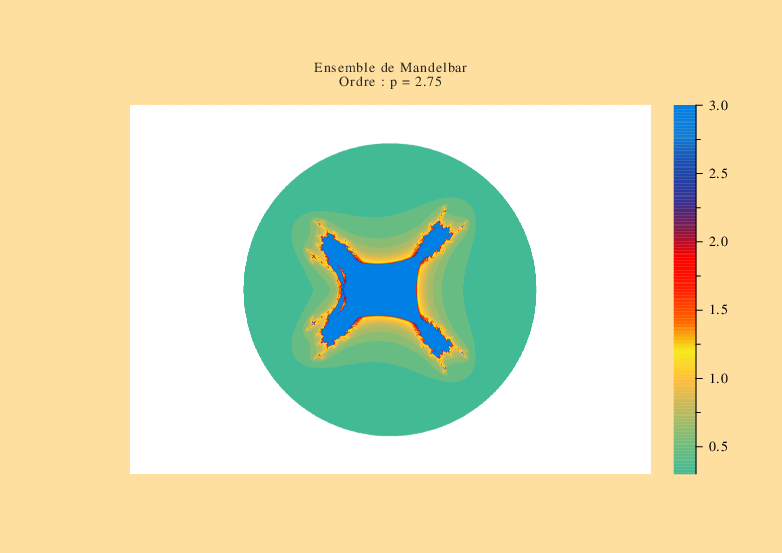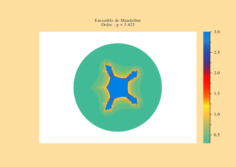int mandelbar_frl_(int filn, double dpuis, double ditrn, const char *colormap) { int xn=1920, yn=1080; double yae_2 = 2; double xae_2 = yae_2/((double)yn)*((double)xn); scltracefa(§, ƒ, ); int litrn=(int)round(log10(ditrn)); char *imgid=; strstag(&imgid, ƒ, "-", num_str(dpuis,5), "-",int_str(litrn), ); char *binname=; strstag(&binname, imgid, ".bin", ); char *binpath = ; strstag(&binpath, "./srt/", binname, ); /*DVR_SCL_QUOU;*/ FILE *fid = ; size_t sot=sizeof(double); int dimn=2; int *crdn=(int*)malloc(dimn*sizeof(int)); crdn[0]=xn; crdn[1]=yn; double **img=; double *x=(double*)malloc(xn*sizeof(double)); double *y=(double*)malloc(yn*sizeof(double)); newtablin(xn, -xae_2, xae_2, x); newtablin(yn, -yae_2, yae_2, y); int itrn=(int)round(ditrn); int fdei=0, estete=0; /*DVR_SCL_QUOU;*/ if(estfichier(binpath)){ // Chargement fid = fopen(binpath, "r+b"); img = (double**)newtabx(sot, dimn, crdn); chargetabx(fid, fdei, estete, &sot, &dimn, &crdn, (void**)&img); fclose(fid); } else{ img=(double**)newmat(sizeof(double), xn, yn); mandelbar_frl_fil(filn, dpuis, itrn, xn, x, yn, y, img); // Sauvegarde fid = fopen(binpath, "w+b"); sauvetabx(fid, fdei, estete, sot, dimn, crdn, (void*)img); fclose(fid); } /*DVR_SCL_QUOU;*/ char *imgname=; strstag(&imgname, ƒ, "-", num_str(dpuis,5), "-", int_str(litrn), "-", colormap, ".pdf", ); char *imgpath=; strstag(&imgpath, "./srt/", imgname, ); int **enr2 = (int**)newmat(sizeof(int), xn, yn); int xi, yi; double cx, cy, cr; for(xi=0;xi<xn;xi++){ cx = x[xi]; for(yi=0;yi<yn;yi++){ cy = y[yi]; cr = (cx*cx + cy*cy); if(cr>=2){ enr2[xi][yi]=0; } else{ enr2[xi][yi]=1; } } } char *subtitlex = ; strstag(&subtitlex, "Ordre : p = ", num_str(dpuis, 5), ); grafmat_dis(imgpath, xn, yn, img, "x", x, "y", y, "instatus", enr2, "subtitle", "Ensemble de Mandelbar", "subtitlex", subtitlex, "axis", "equal", "axis", "off", "colormap", colormap, "background-color", "j", /*"colormap", "reverseground",*/ ); scltracefe(§, ƒ, ); return 0; } /* ƒ décorée par 🔬 le 16-03-2025 22:06:57 */